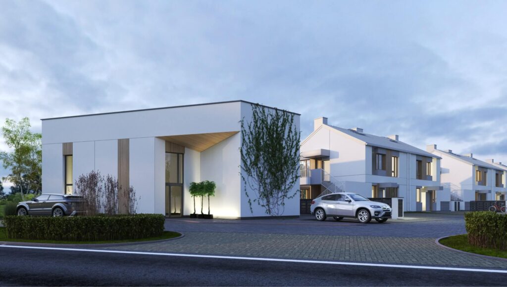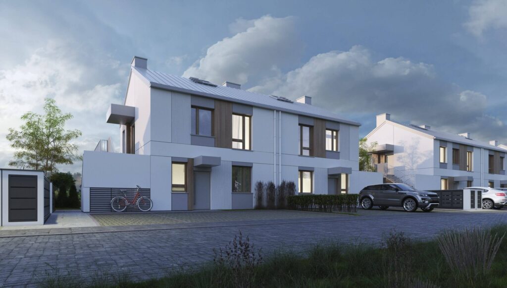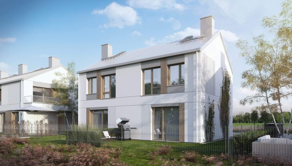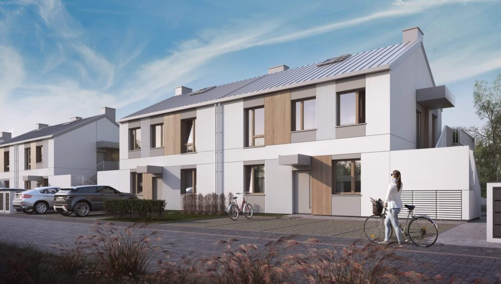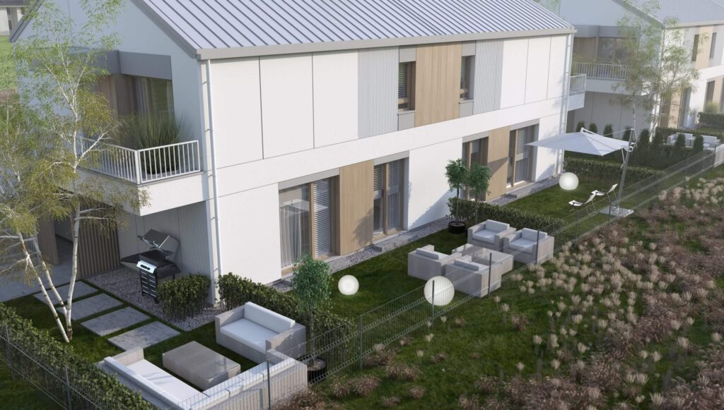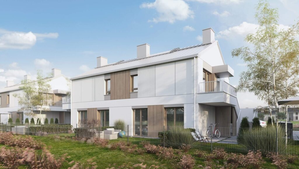 Zielone Falenty to kameralna inwestycja w Falentach Dużych pod Warszawą. Nowoczesne, dwukondygnacyjne budynki wyróżniają się elegancką architekturą i funkcjonalnymi rozkładami wnętrz. Każde mieszkanie posiada własny ogródek, a lokale na piętrze dodatkowo poddasze do indywidualnej aranżacji. Standard inwestycji obejmuje pompę ciepła, fotowoltaikę oraz ogrzewanie podłogowe – wszystko w cenie domu. Do każdego domu przynależą dwa niezależne miejsca parkingowe.