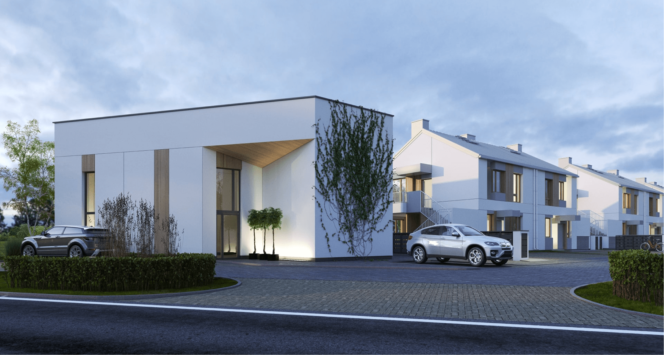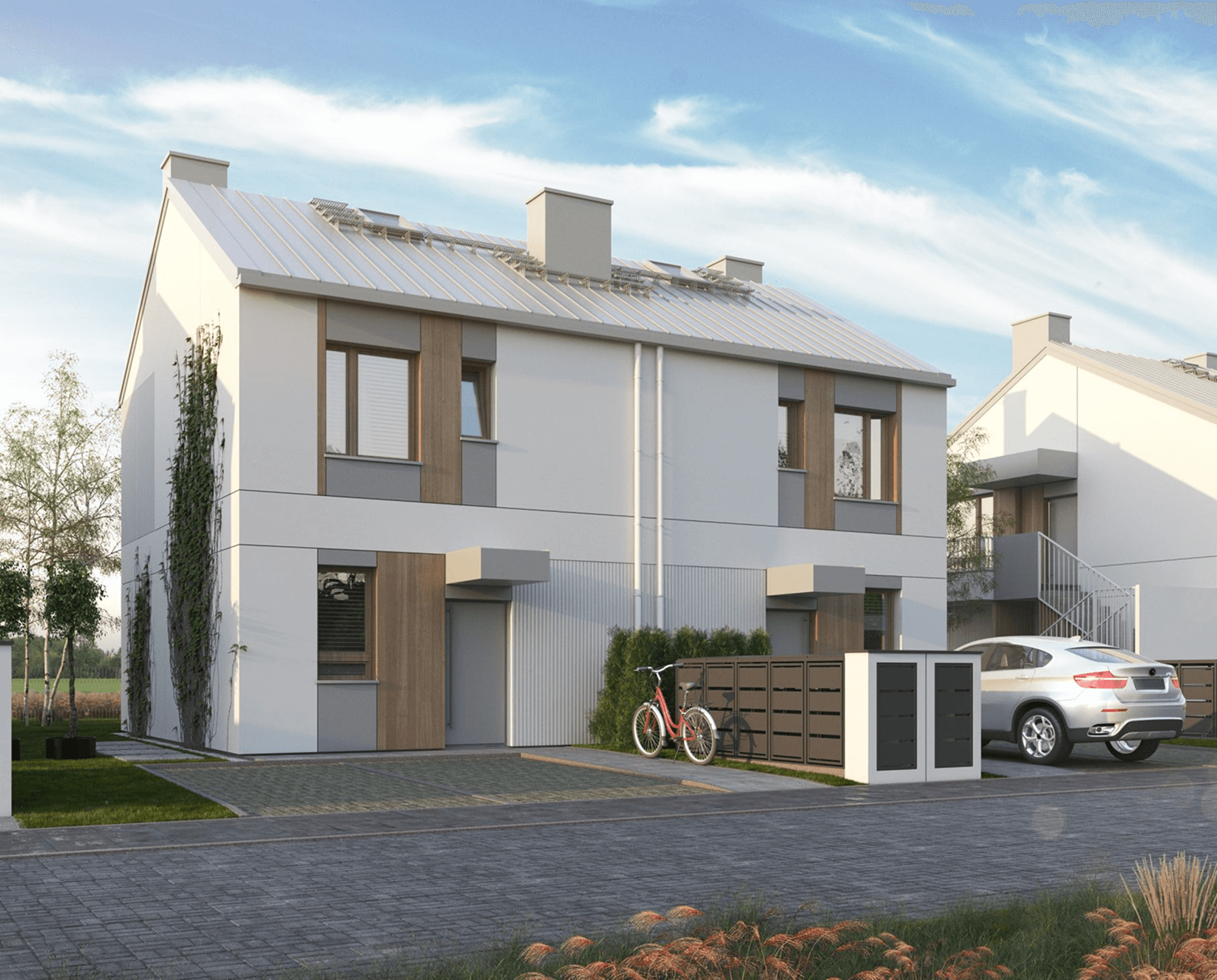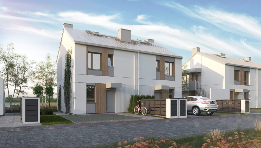 Zielone Falenty to kameralna inwestycja w Falentach Dużych pod Warszawą. Nowoczesne, dwukondygnacyjne budynki wyróżniają się elegancką architekturą i funkcjonalnymi rozkładami wnętrz. Każde mieszkanie posiada własny ogródek, a lokale na piętrze dodatkowo poddasze do indywidualnej aranżacji. Standard inwestycji obejmuje pompę ciepła, fotowoltaikę oraz ogrzewanie podłogowe – wszystko w cenie domu. Do każdego domu przynależą dwa niezależne miejsca parkingowe.